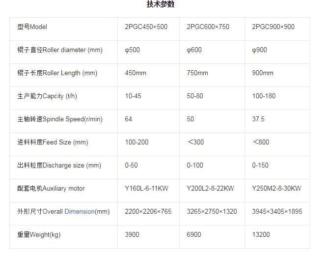 雙齒輥破碎機技術參數: